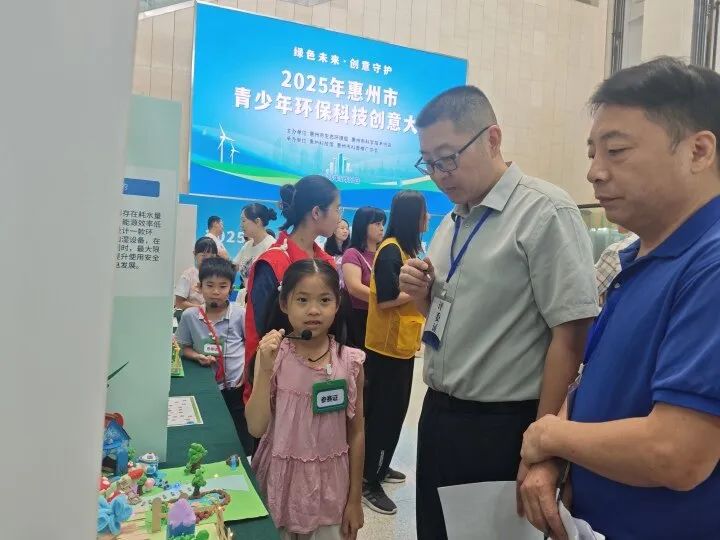 在展评环节,小选手们自信讲解创作理念,观众沉浸式体验科技魅力。“以前我只知道要回收垃圾,”来自惠州市南坛小学的8岁参赛者沈镁斯分享道,“通过设计减少电器浪费的比赛装置,我明白了环保需要全方位行动:既要注重物品质量、节省资源,更要警惕那些看不见的环境污染。”她的感悟道出众多参赛者的心声——环保不仅是口号,更是融入日常的科技实践。