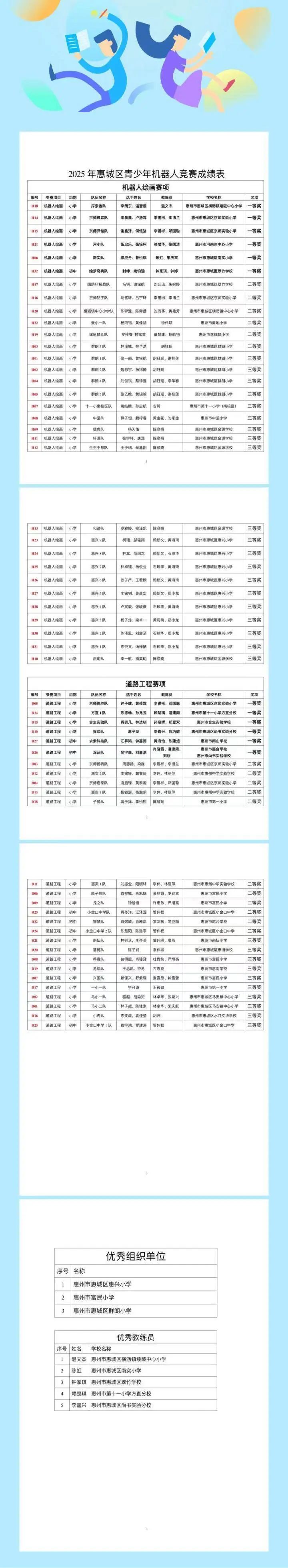 6月7日,由惠城区科协和惠城区教育局联合主办,惠州科技馆协办,惠州市青少年科技教育协会承办的2025年惠城区青少年机器人竞赛在惠州科技馆举行。来自全区各中小学的59支青少年科技队伍汇聚一堂,围绕“机器人绘画”与“道路工程”两大核心项目展开了一场精彩纷呈的科技智慧与动手能力相结合的激烈角逐。