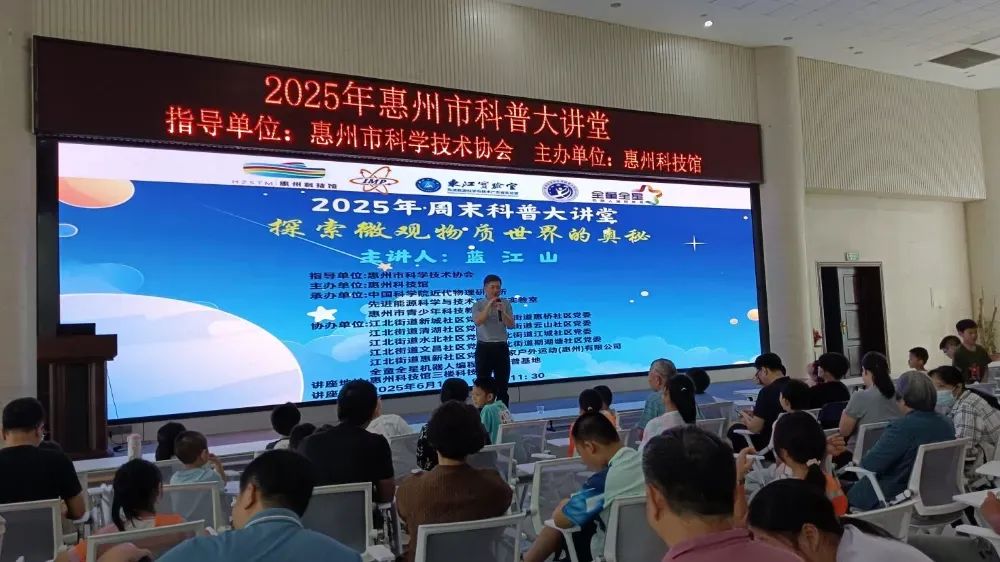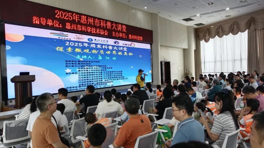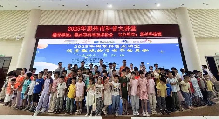 ,提高青少年科技水平”专题讲座。分享微观物质的结构、特性及最新研究成果,通俗易懂的讲解,赢得大家的阵阵掌声。同时,本次活动我们荣幸邀请到惠城区科学技术协会李彦青部长讲话,他希望青少年都能保持对未知的渴望,大胆提问,勇于质疑,树立远大志向,鼓励现场小朋友努力学习,将来为国家,为社会作出贡献。